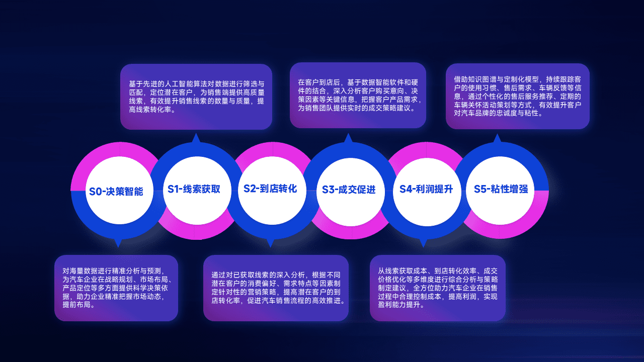 通过拓宽潜在客户来源、、、优化线索分配并提高到店转化率,,,以增强销售效率。。。同时,,,利用线索数据不断优化分析模型,,,有效提升转化率,,,,扩大营销影响力。。。。