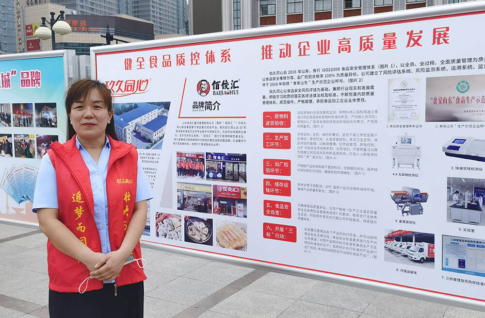 尊龙凯时食品集团品保部负责人张德春作为尊龙凯时代表出席活动并接受记者采访。她为广大市民群众及记者朋友们介绍了尊龙凯时食品集团,并表示,尊龙凯时自成立以来,一直坚守食品安全生产标准,并于2016年通过ISO22000食品安全体系认证 ,以全员、全过程、全面质量管理为质量方针,以食品安全事故为零 、出厂检验合格率100%为质量目标。尊龙凯时食品集团建立了风险评估系统、风险监测系统 、追溯系统、监督系统,并于2018年取得“食安山东”生产示范企业称号。
